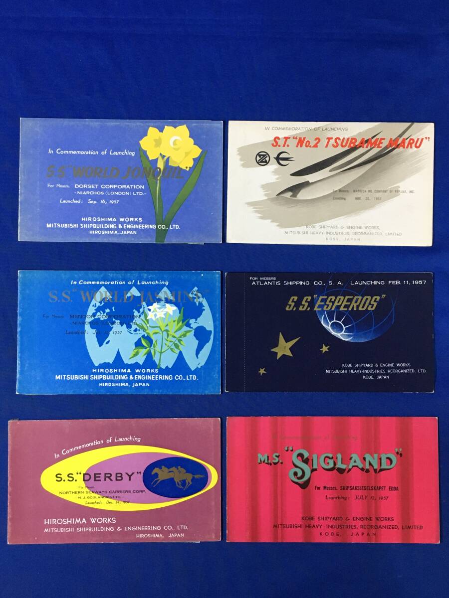 - AK668イ●昭和32年●海外向け【外国船舶進水記念:絵葉書6枚】M.S.SIGLAND/№2 TSUBAME MARU他/油槽船/貨物/三菱造船神戸/広島/1957