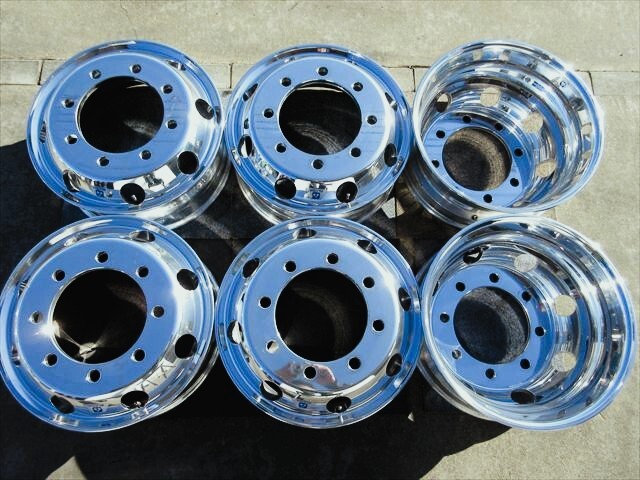 - 送料無料 新車外し 美品 アルコア アルミホイール ISO 平面座 19.5×6.75 147 8穴 鏡面仕上げ済み 6本セット