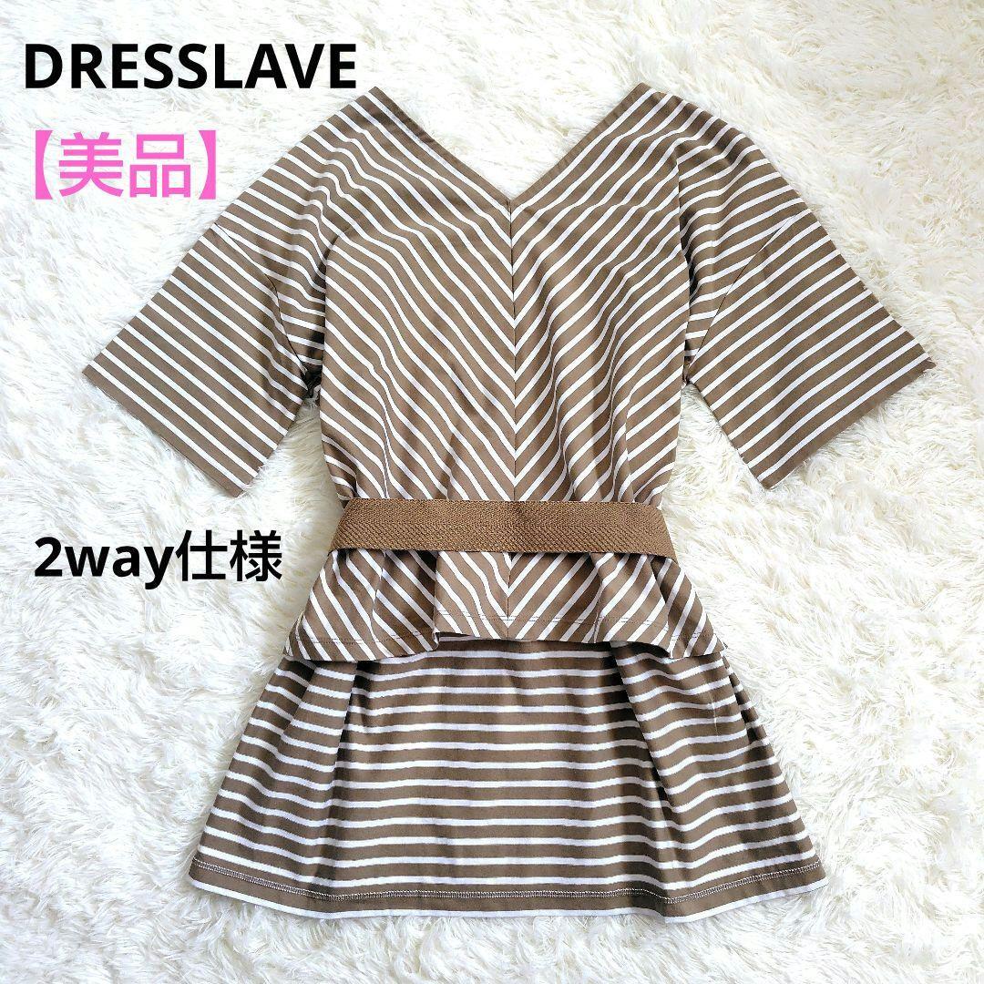 - 【美品】ドレスレイブ 日本製 バックリボン ベルト カットソー ストライプ