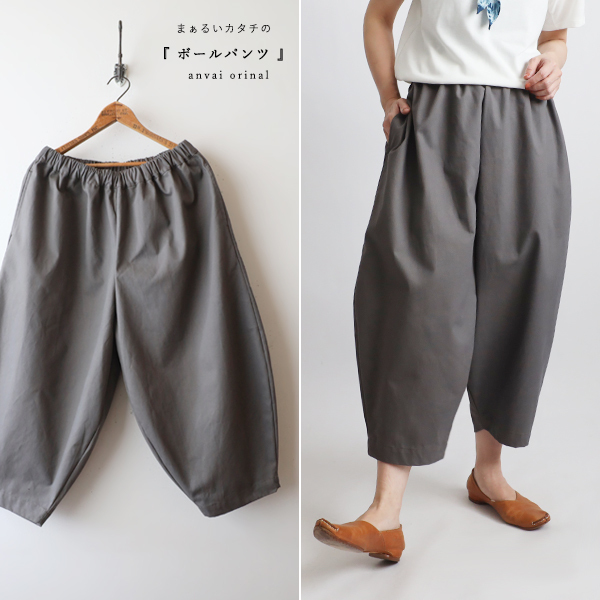 - 秋のパンツ祭り 80cm丈 コットンチノ生地 定番バルーン ボール パンツ チノパン カーキグレー R53A◎