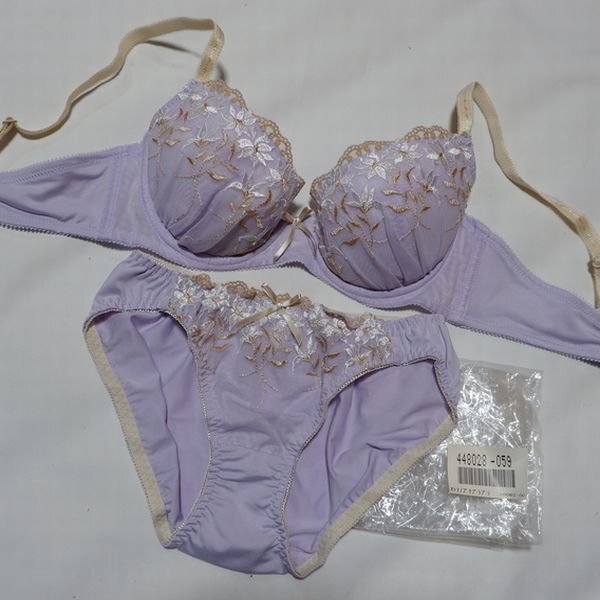 - 美成 C75M 寄せ上谷間 お華刺繍 ブラ&ショーツ ラベンダー