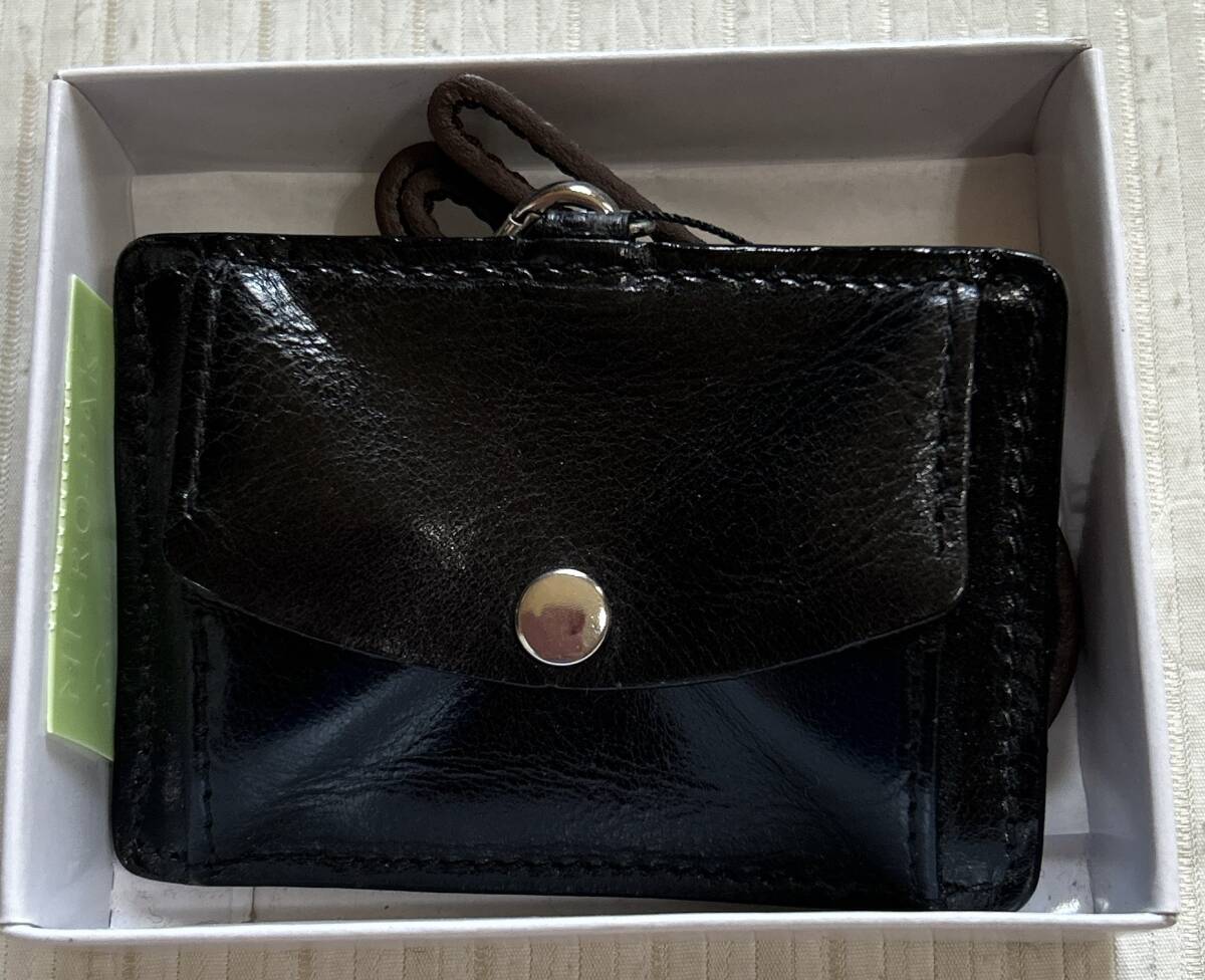 - 小銭入れ 高級 牛革製 青山商事商品 横10cm×縦7cm 手提げ革ヒモ付き■■箱入り5800円品未使用品