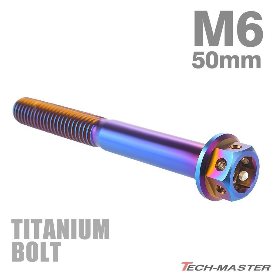 > M6×50mm P1.0 64チタン合金 ホールヘッド 六角ボルト フランジ付き 焼きチタンカラー ダークカラー 車/バイク/自転車 1個 JA740