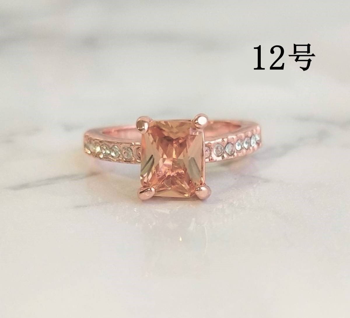 - スクエアリング ピンクゴールド 12号 ジルコニア 普段使い 指輪 スクエア リング パパラチアサファイアカラー ピンクオレンジ
