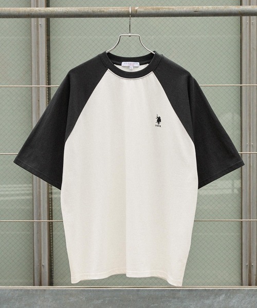 - 新品・未使用♪U.S. POLO ASSN♪ワンポイント刺繍 ラグラン配色オーバーサイズ半袖Tシャツ♪Lサイズ♪ホワイト&ブラック♪