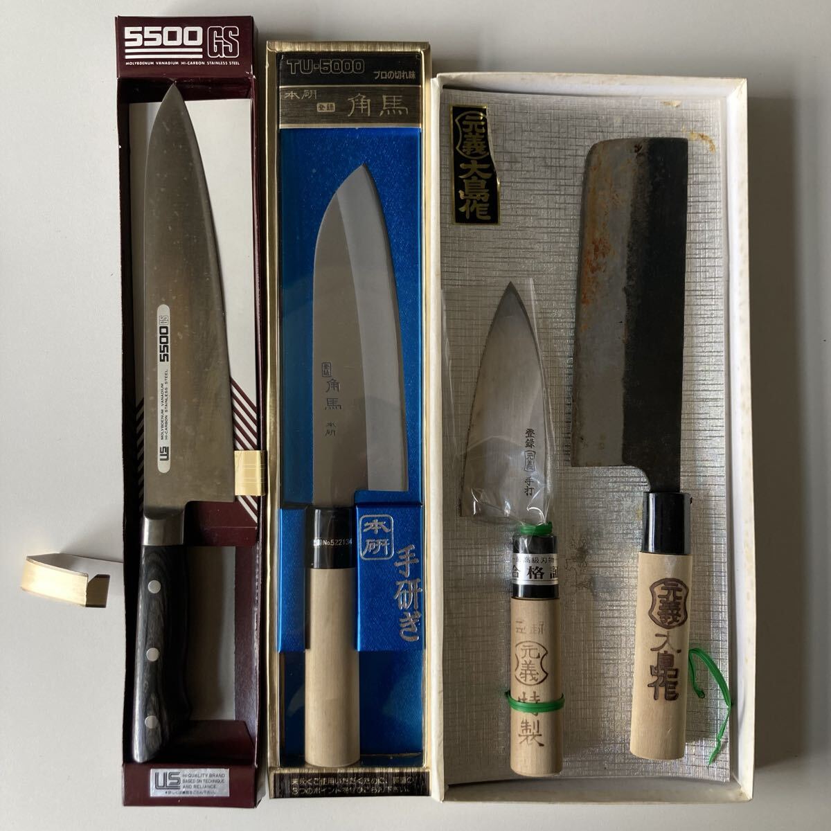 - 未使用有 包丁 4本セット まとめ Z5503 5500GS 本研 角馬 TU-5000 元義 大島作 牛刀 三徳