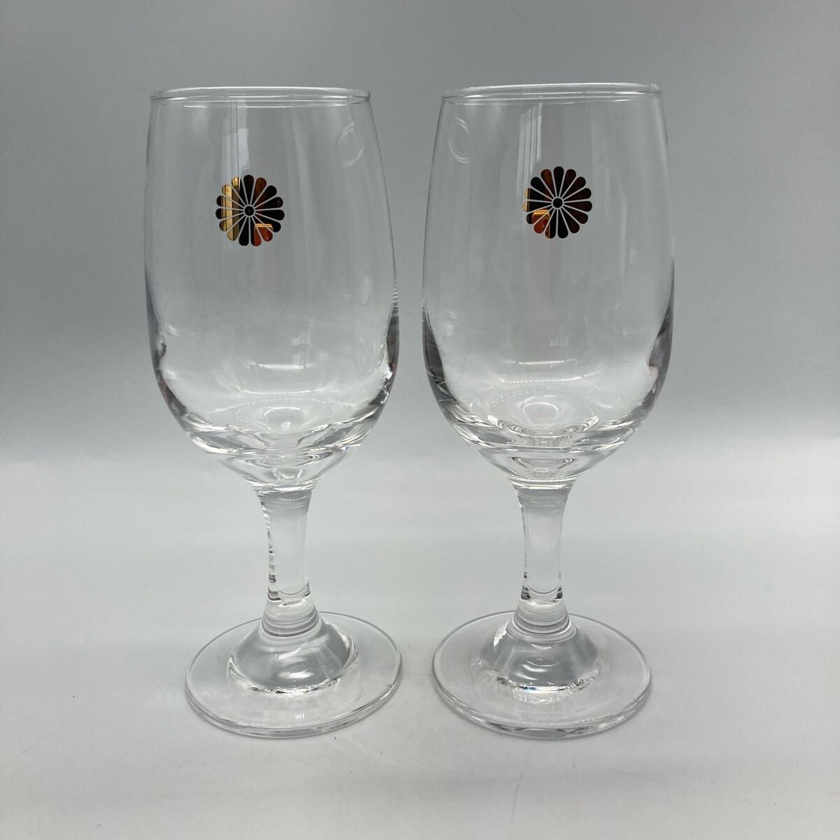- M0905705B 皇居菊の御紋ペアワイングラス ペア グラス 菊 紋章 WineGlass Glass 菊紋 酒器 アルコールグラス セット 当時物 中古品 現状品