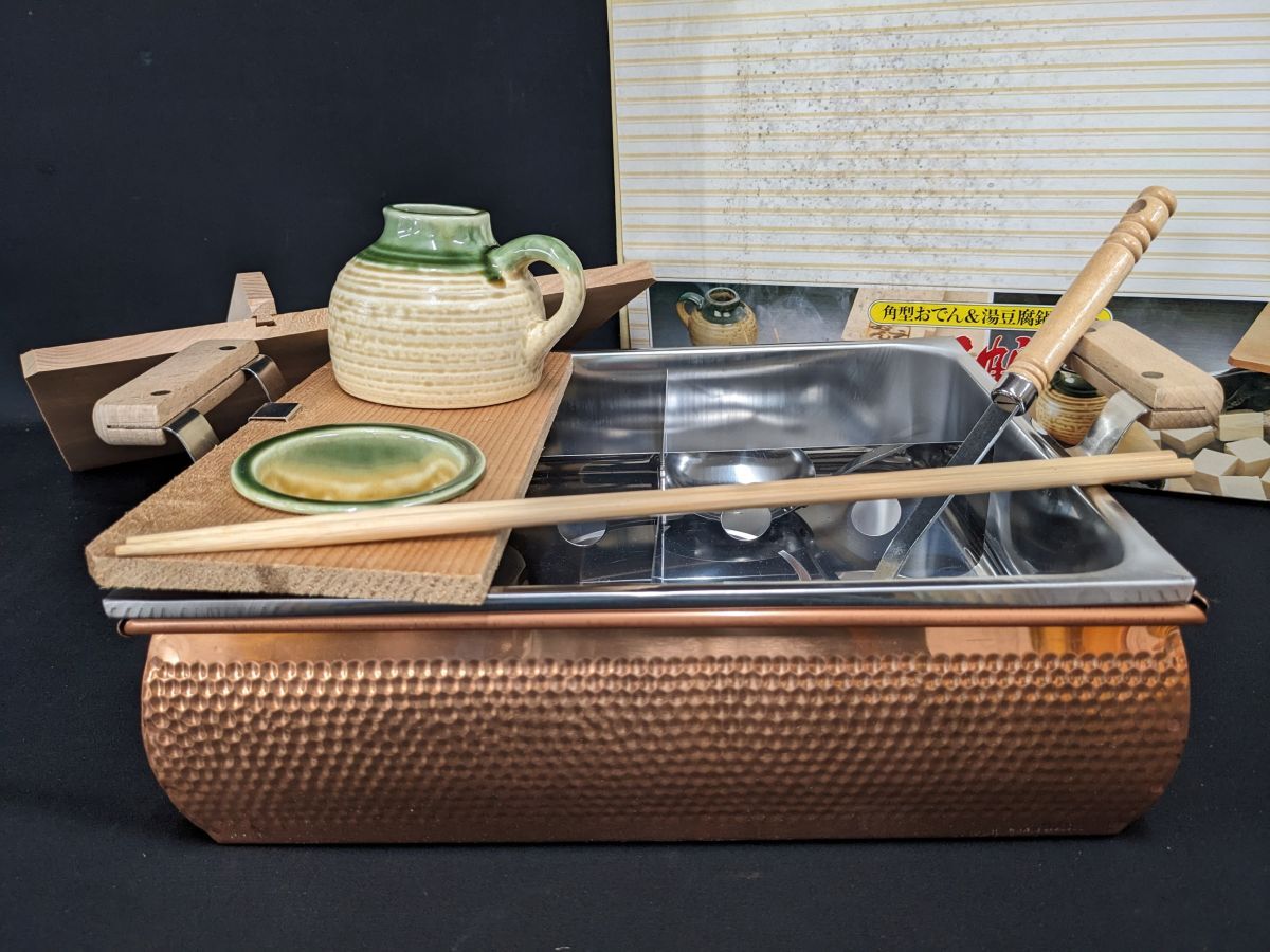> V001 角型おでん&湯豆腐鍋セット 夕鶴 本体 ステンレス製 蓋 木製 26㎝×22.5㎝ 3.5リットル/100