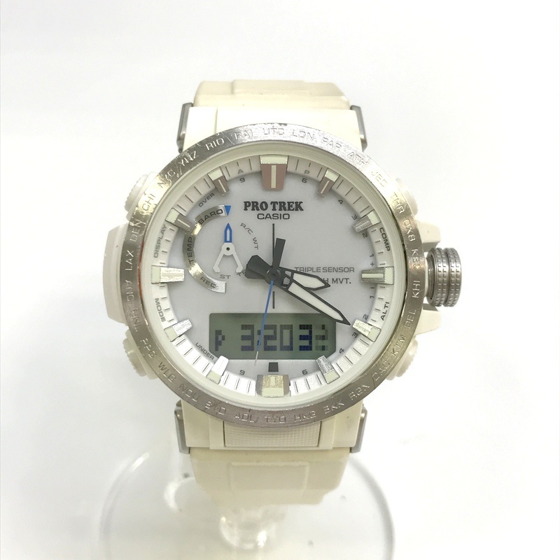 - CASIO カシオ PRO TREK プロトレック タフソーラー 腕時計 PRW-60 メンズ アナデジ ホワイト アウトドア とけい 服飾 ◇TA3260