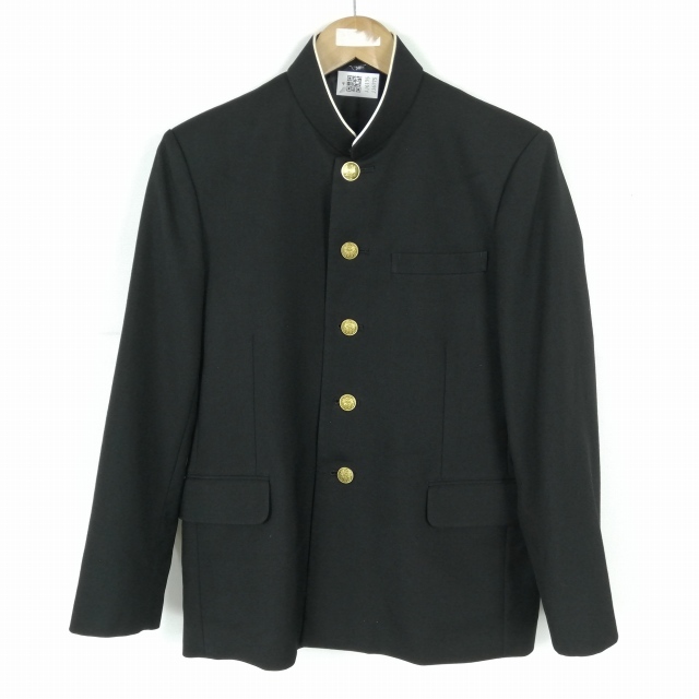 - 学生服 学ラン 160A 男子 上着 ウール混 標準型学生服 ラウンドカラー カシドス 黒 中古 ランクC a3 JJ6175