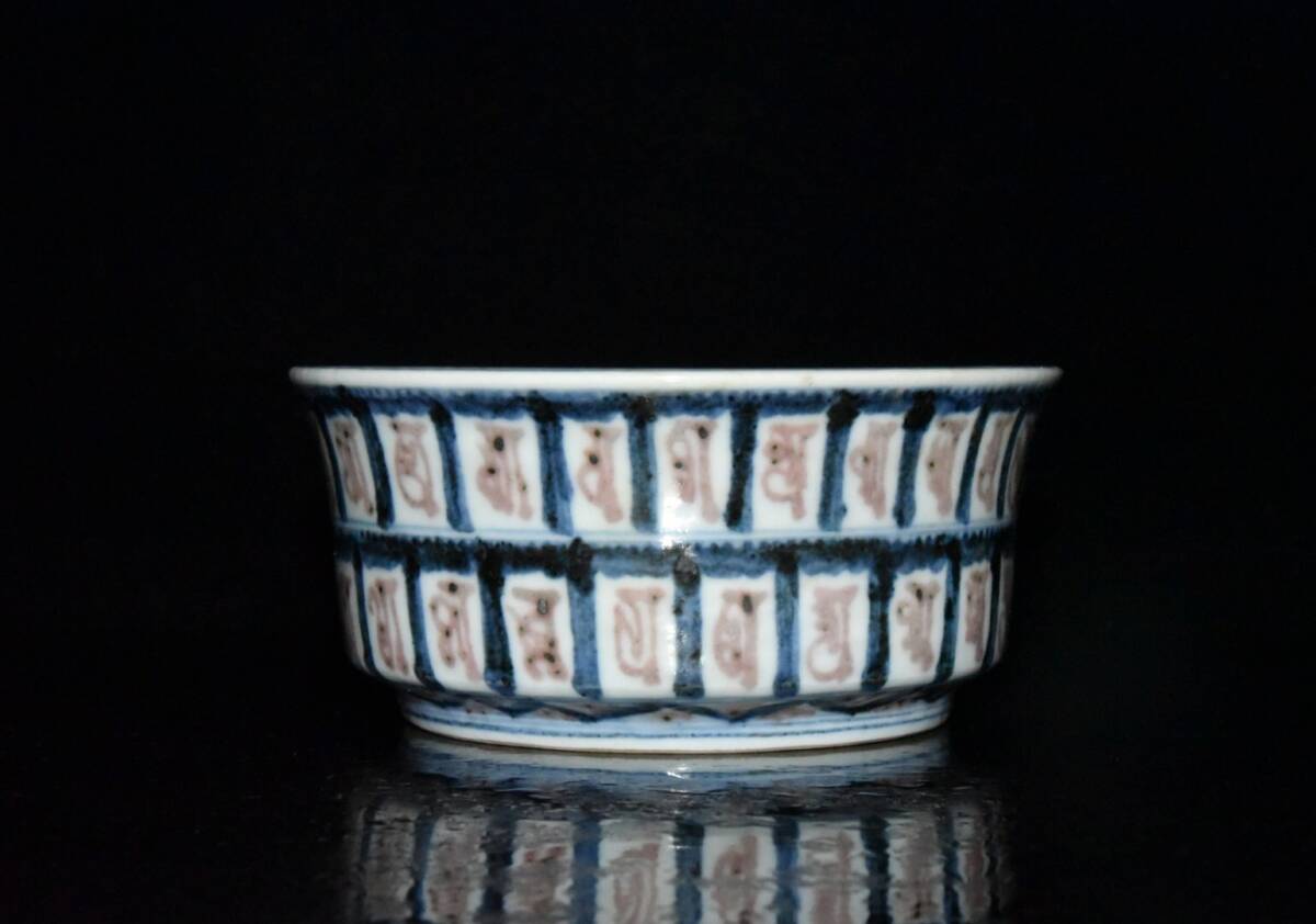- 蔵友旧蔵出 明 建文年製款 青花 釉裡紅 梵文 供碗 稀少珍品 貴重品 古陶瓷品 置物 古賞物 中国古玩 中国古美術品
