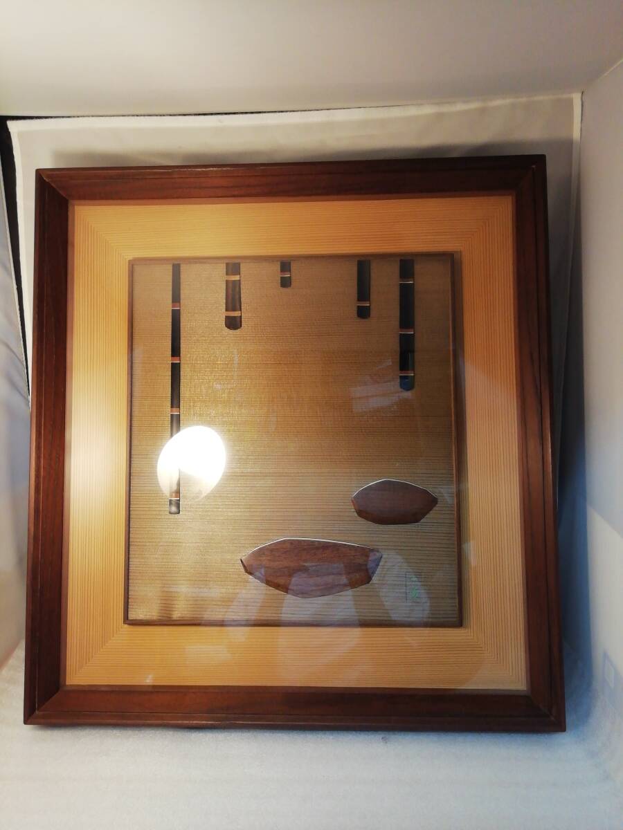 - ◆横山 一夢 謹製◆額【 木芸 静寂 竹石 およそ49×52×5㎝ 】◆
