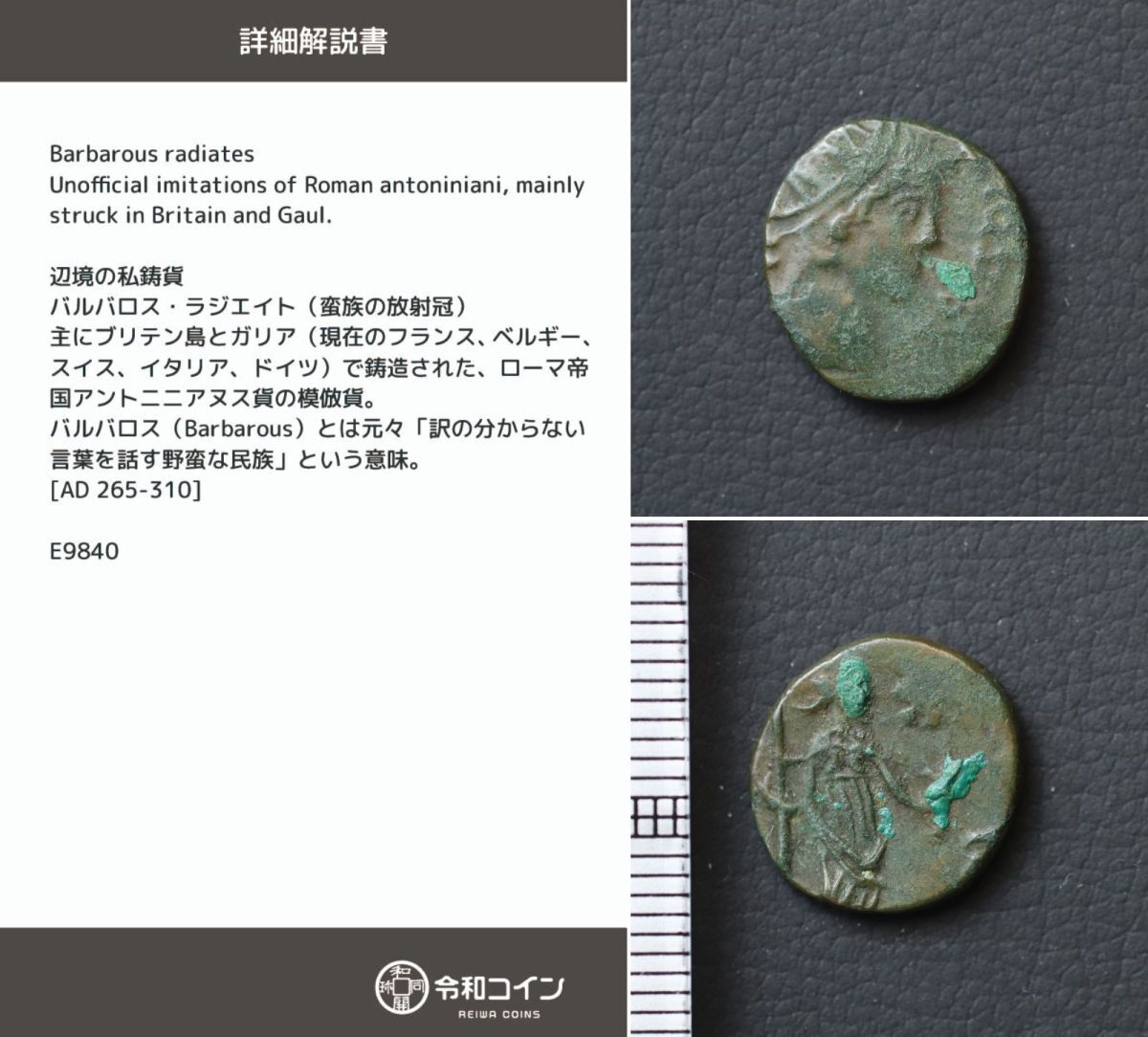 > *[令]辺境の私鋳貨「バルバロス・ラジエイト」古代ローマコインの模倣貨【詳細説明カード付】古代ギリシャ[E9840]7r0