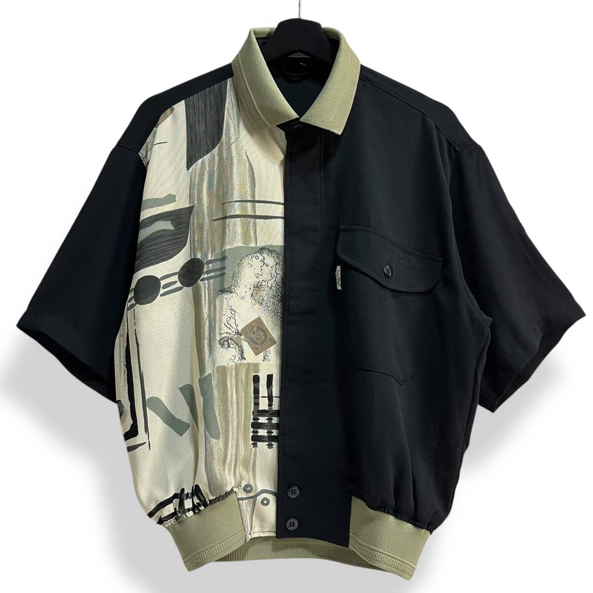 > 秀逸 美品【Troy Bros】VINTAGE 80s 90s ビンテージポリシャツ アシンメトリーデザイン レトロ古着 シアー生地 リブデザイン トロイブロス