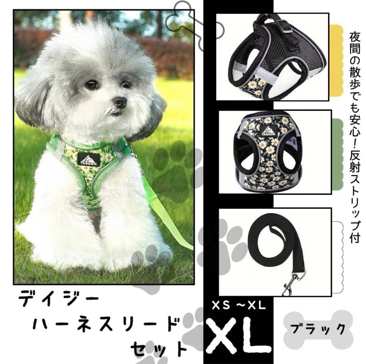 - 新品!デイジー ハーネス リード セット ブラック XL 散歩 犬用 メッシュ 反射