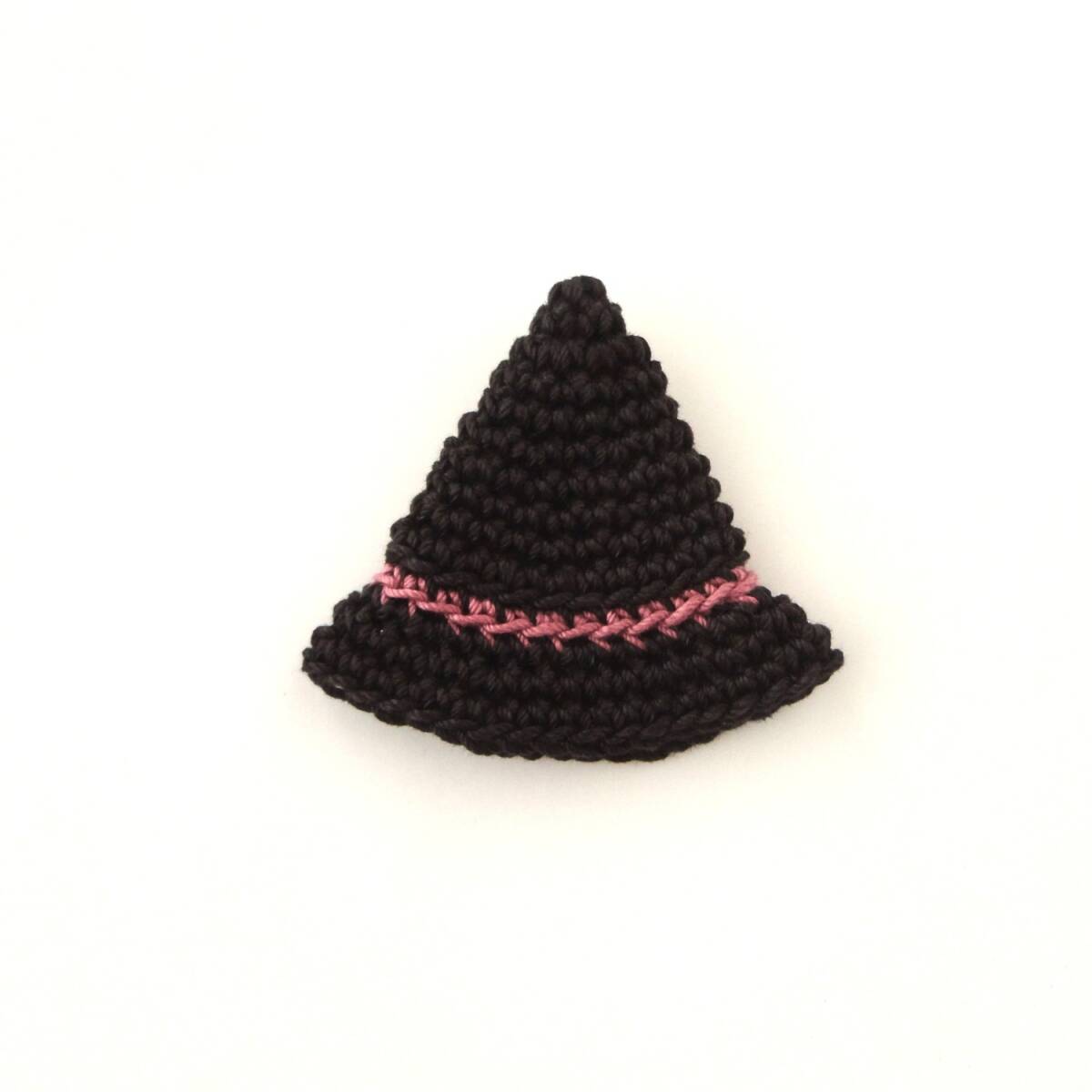 - ハロウィン*魔法使いの帽子のブローチ*BK×PU*レース編み*ハンドメイド*b891