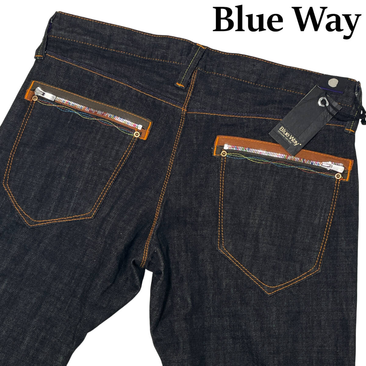 > 新品 Blue Way M1190 サイズLL (約88cm W34相当)レインボージップ タイトストレート 日本製 デニムパンツ ジーンズ