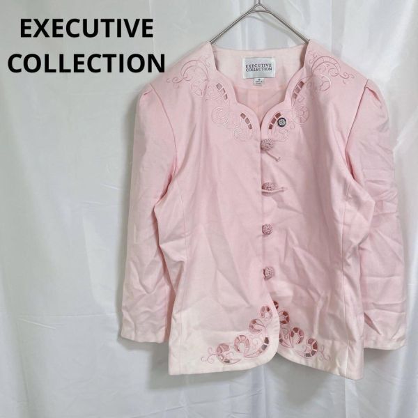 - EXECUTIVE COLLECTION◇刺繍ノーカラージャケット【3L】大きめ