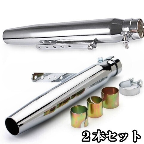 > (2本set)新品即決 バイク 汎用 テーパード スリップオンマフラー 全長435mm メッキ イントルーダー スティード400 ドラッグスター ビラーゴ