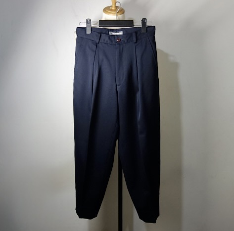 - TK 筆タグ 希少 イッセイミヤケ issey miyake 秀逸デザイン ワイドシルエット ワンタック パンツ 紺 ネイビー ギャバ S