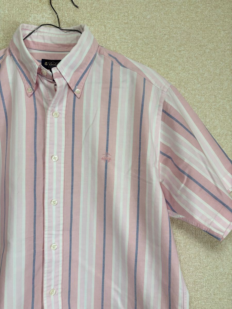 > Brooks Brothers ブルックスブラザーズ ストライプ 半袖シャツ メンズMサイズ ロゴ刺繍 ボタンダウンシャツ
