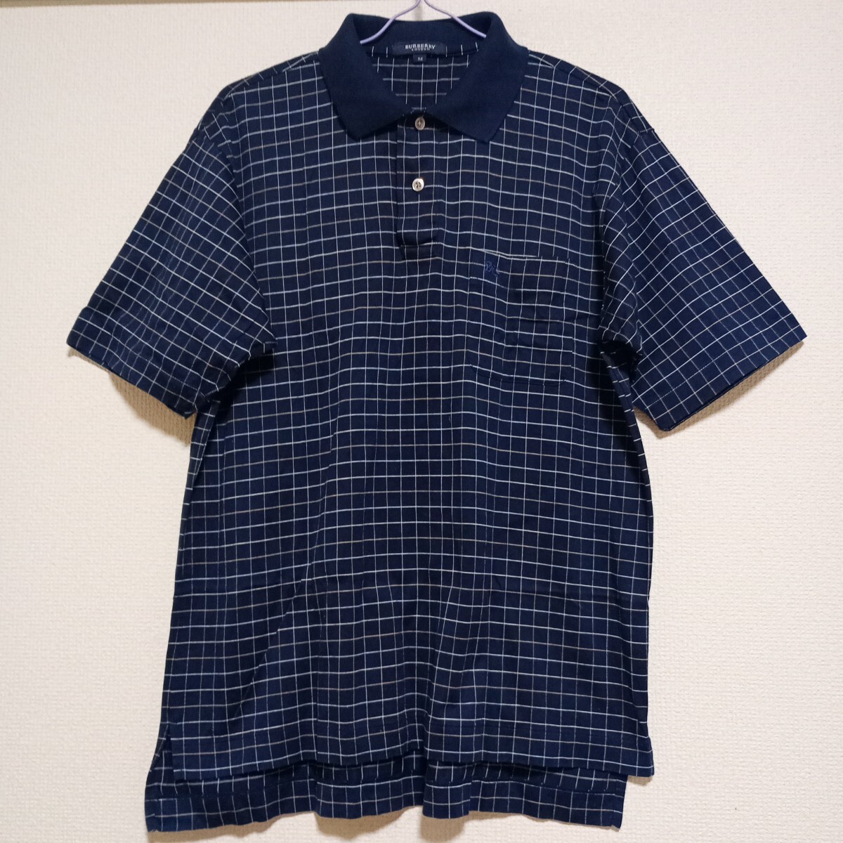 - BURBERRY グラフチェックコットン半袖ポロシャツ M 紺×白×ベージュ