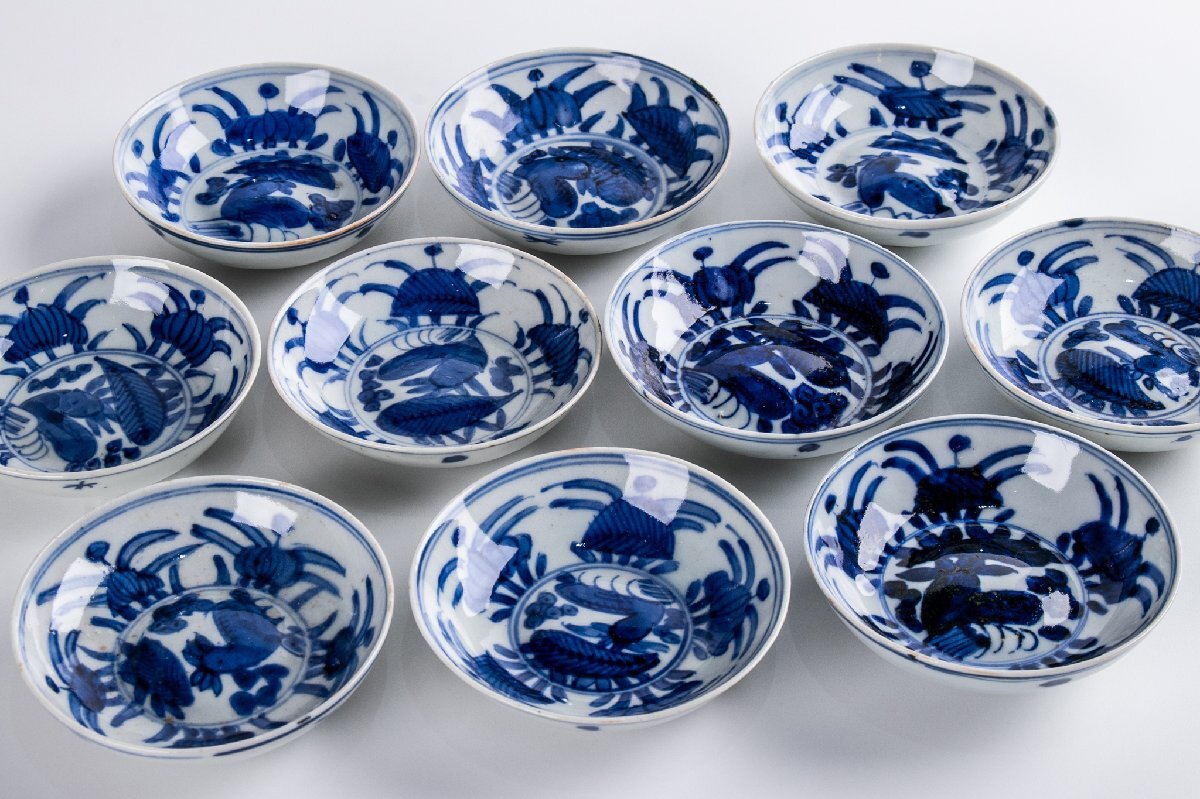 - 【うつわ】 南京染付 花鳥文小皿 豆皿 10客 清朝時代 E2288 バラ売り可能です 茶道具 古美術 骨董 古玩 日本料理 懐石