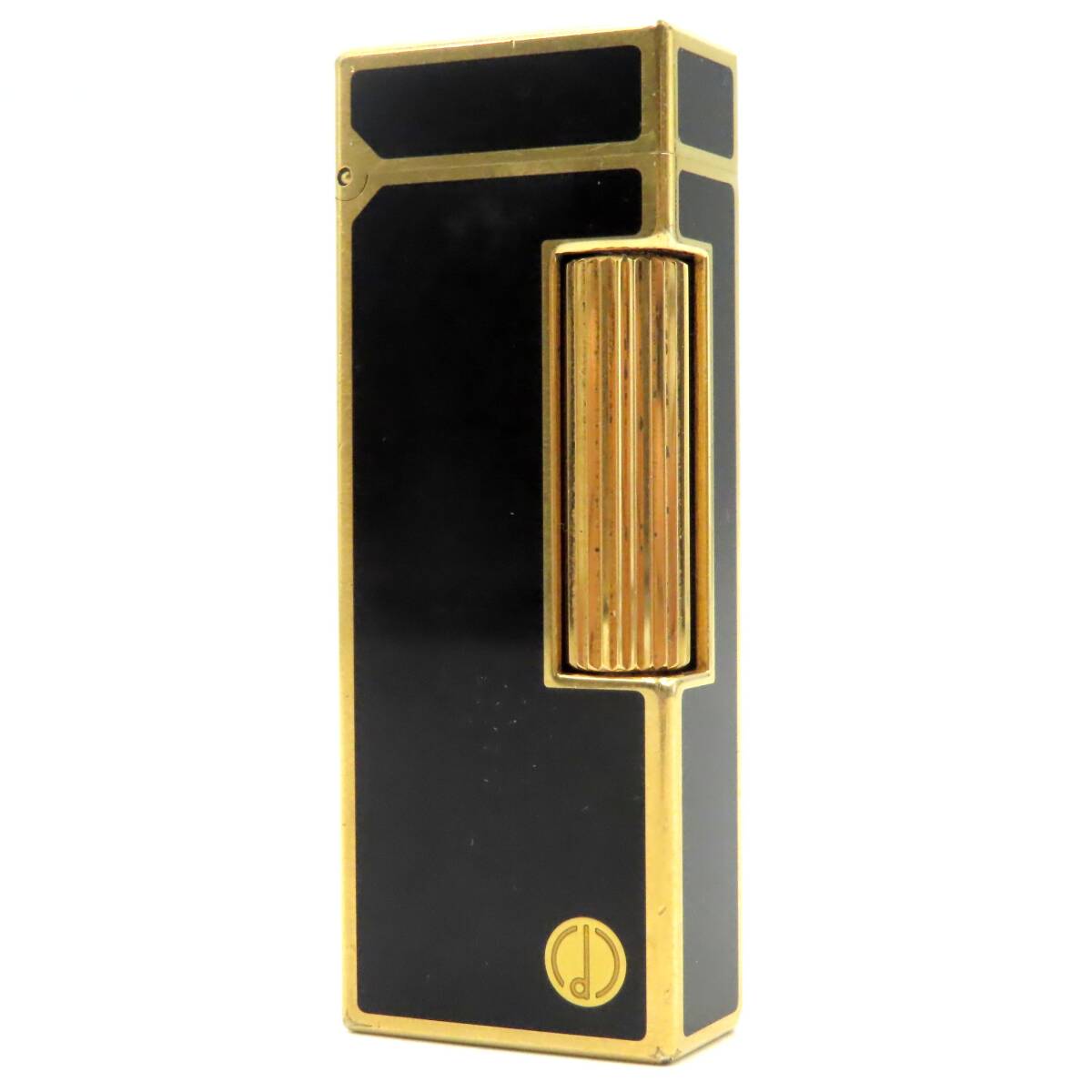 - ■【YF刻印】 dunhill ダンヒル ローラーガスライター ブラック×ゴールド系 メンズ 男性用 禁煙グッズ アンティーク レトロ コレクション