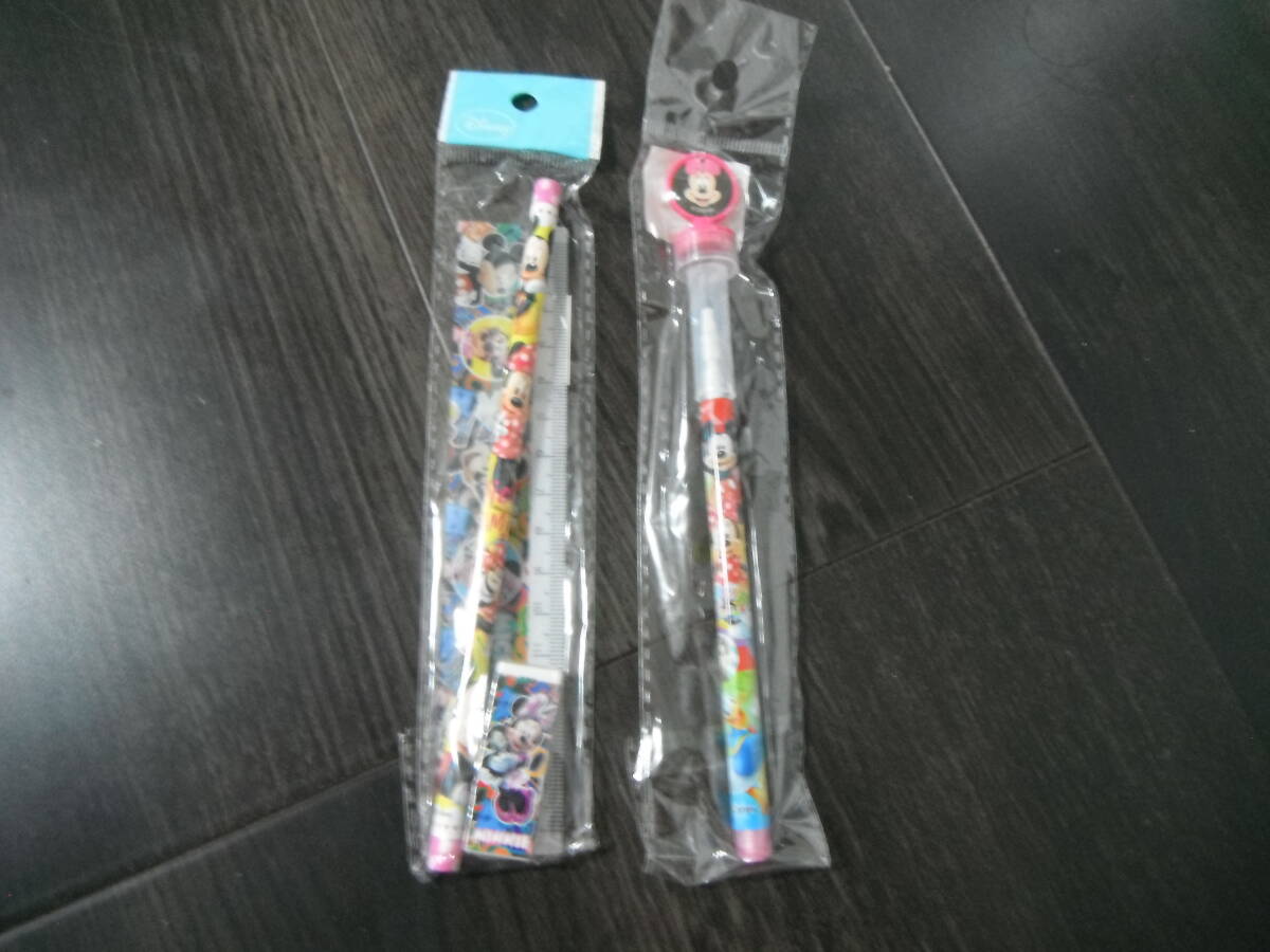 - 【新品】ディズニー ミッキー ミニー 3点文具セット スタンプ付ロケット鉛筆 まとめて