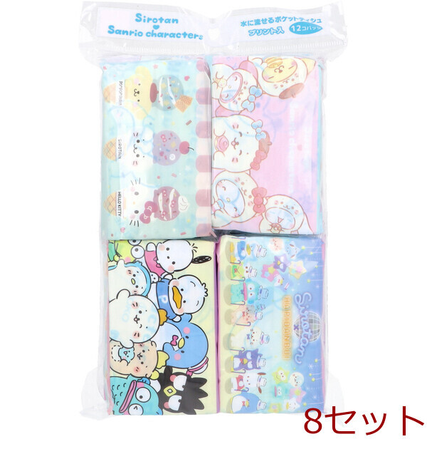 - しろたん×サンリオキャラクターズ 水に流せるポケットティシュ プリント入 16枚 8組 ×12個入 8セット