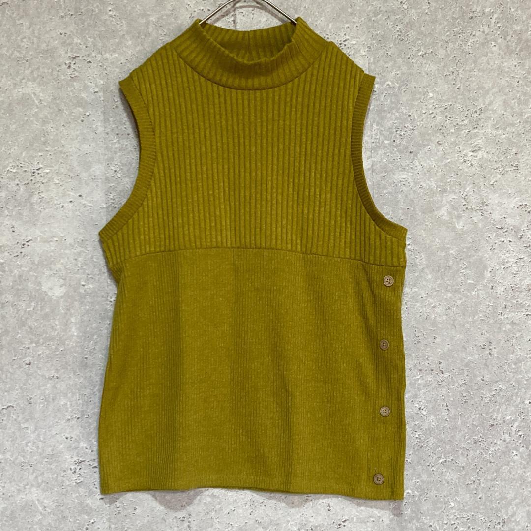 - Has ideal(M)ニットベスト*ハイネック*伸縮性*リブ*ノースリーブ*緑