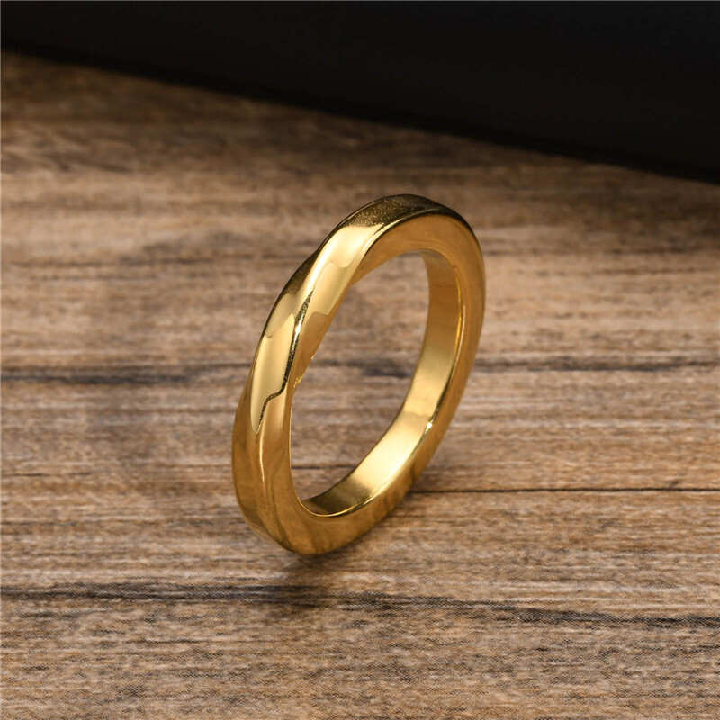 - 【18号】メンズ ゴールド 指輪 リング ツイスト シンプル 綺麗 ねじれ アクセサリー プレゼント