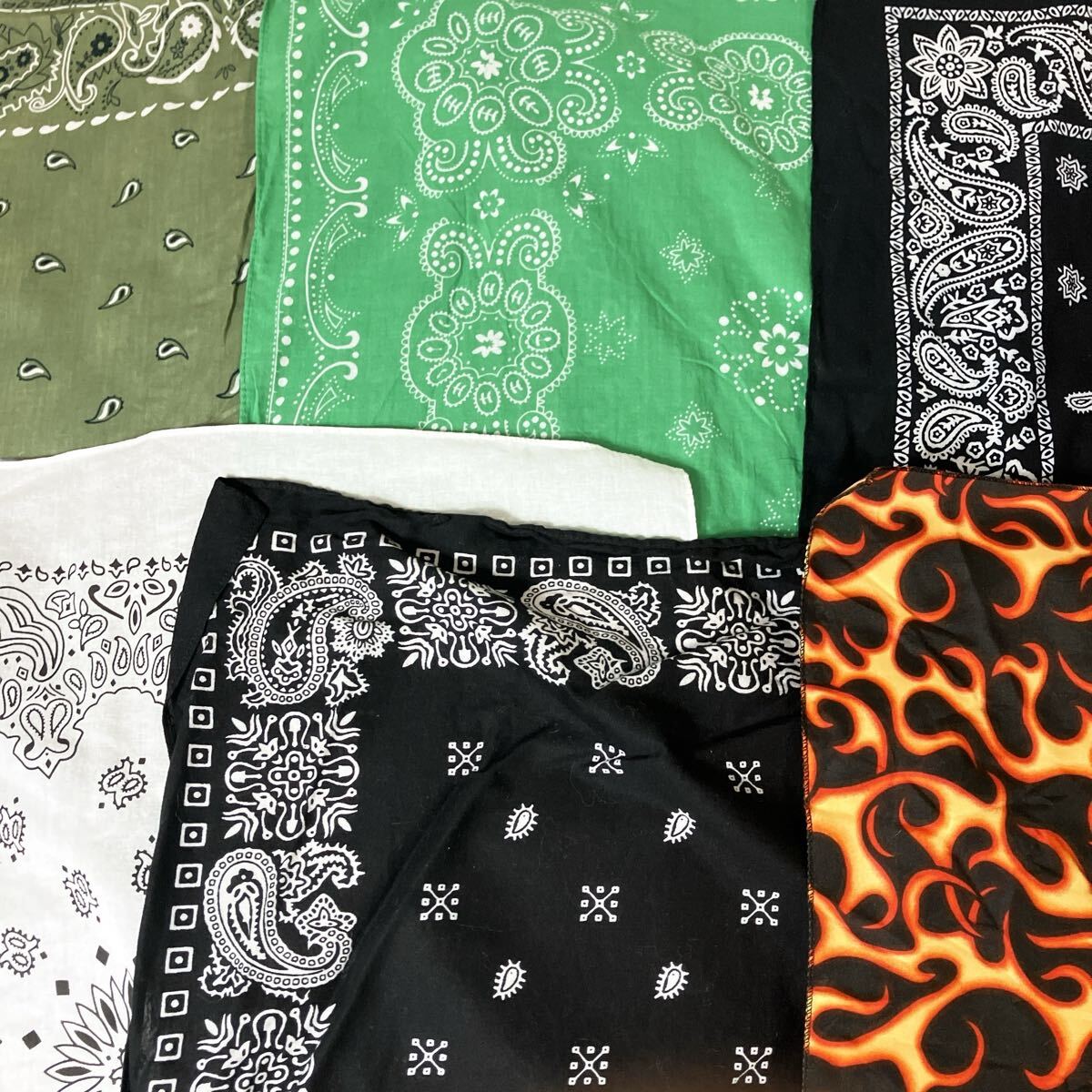 > バンダナ 6枚セット ペイズリー カラーmix 黒ブラック グリーン緑 白ホワイト US古着 小物 00s〜 格安セットアソート ファイヤーパターン