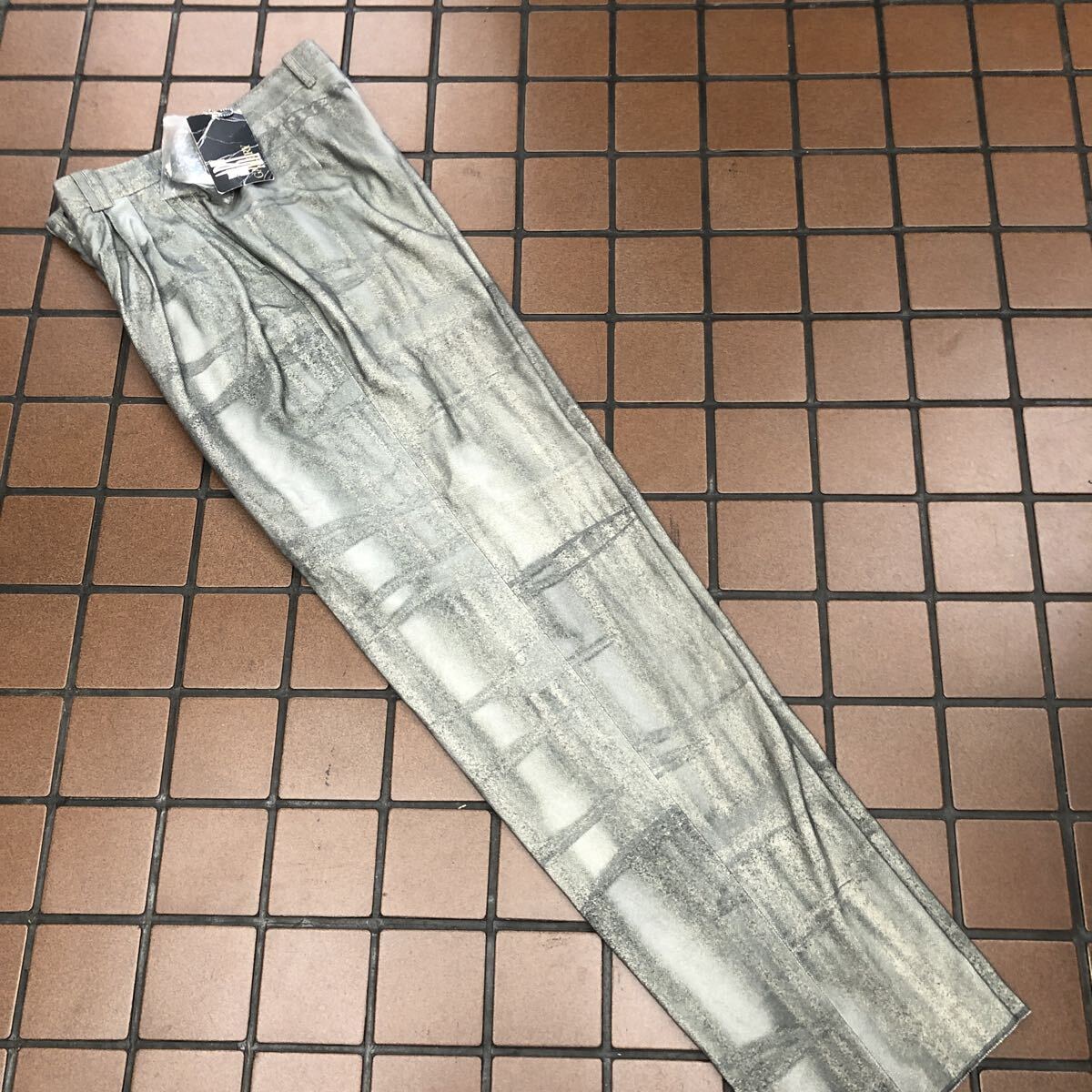 > 激安《33,000円の品》タグ付き高級ARTGALLERY ヴィンテージスラックス サイズ76 ホワイトリザード柄 ゴルフパンツ ヌバックベロア素材