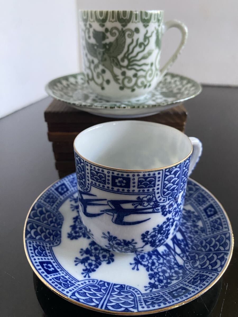 - 未使用品◆アンティーク◆骨董◆デミタス カップ&ソーサー 2客セット 燕 日本特製印 鳳凰 福印 透かし芸者