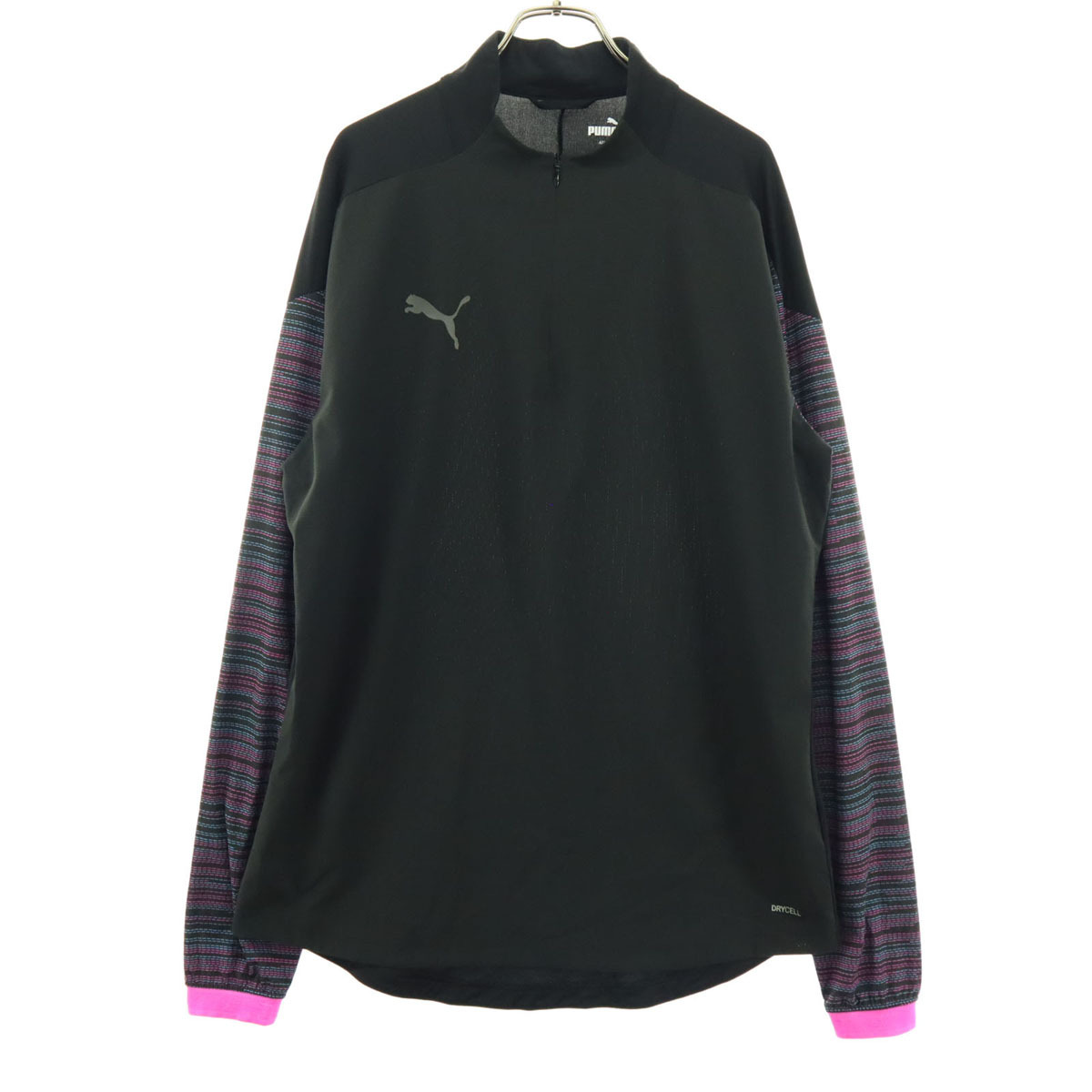 > 美品 PUMA プーマ ワンポイントロゴ 長袖 トラックジャケット XL ブラック ハーフジップ レディース
