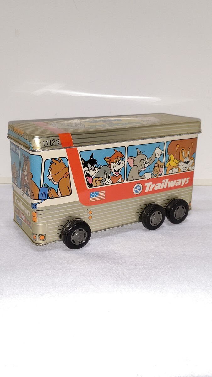 - 当時物 トムとジェリー バス型クッキー缶 レトロ お菓子缶 * 1989年 雑貨 ブリキ缶 コレクション