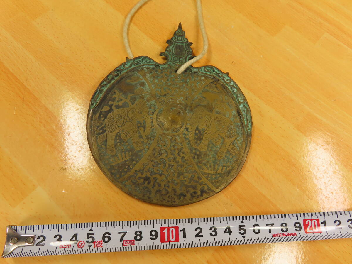 - 古い青銅製 飾り板 レリーフ メダル アジア 象 仏教