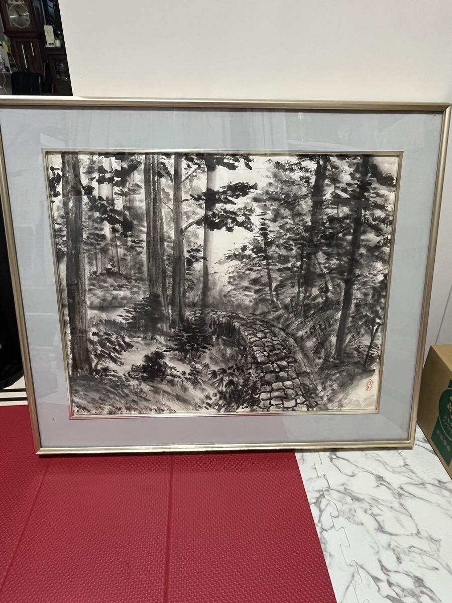 - 額装 風景 真作 インテリア 水彩 街並み リトグラフ 版画 直筆サイン 美術品 森路絵