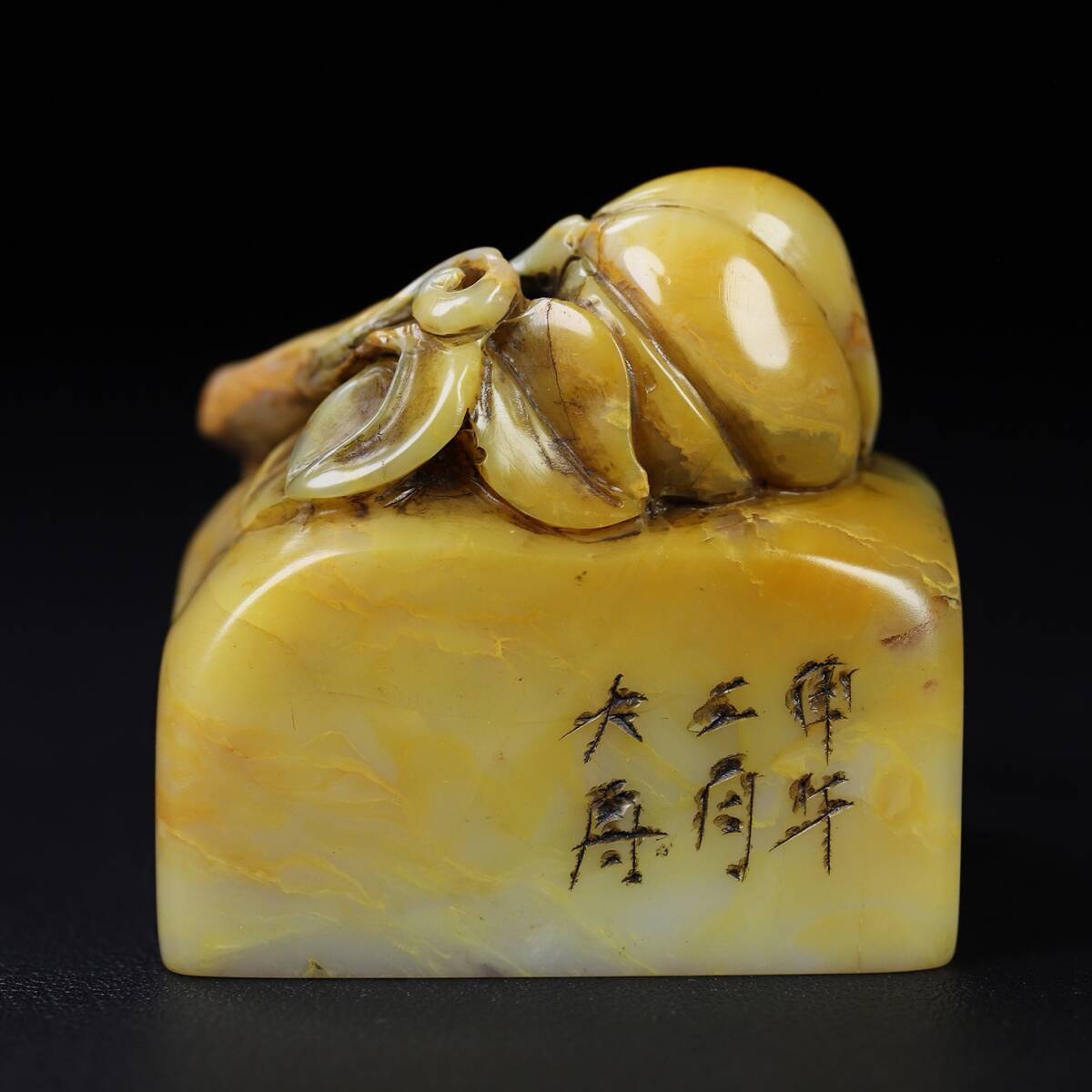 - 旧蔵 【清代篆刻家 六舟】寿山石 印鑑 『碩果累累』 高レリーフ 天然石 手彫 篆刻 古印材 極細工 中国古玩 骨董品 古美味 209