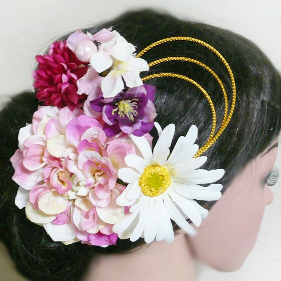 - 花 髪飾り ダリアpwとマーガレット他 ピンク 白 紫 結婚式 振袖 成人式 着物 卒業式 袴 和装小物(1)(2)