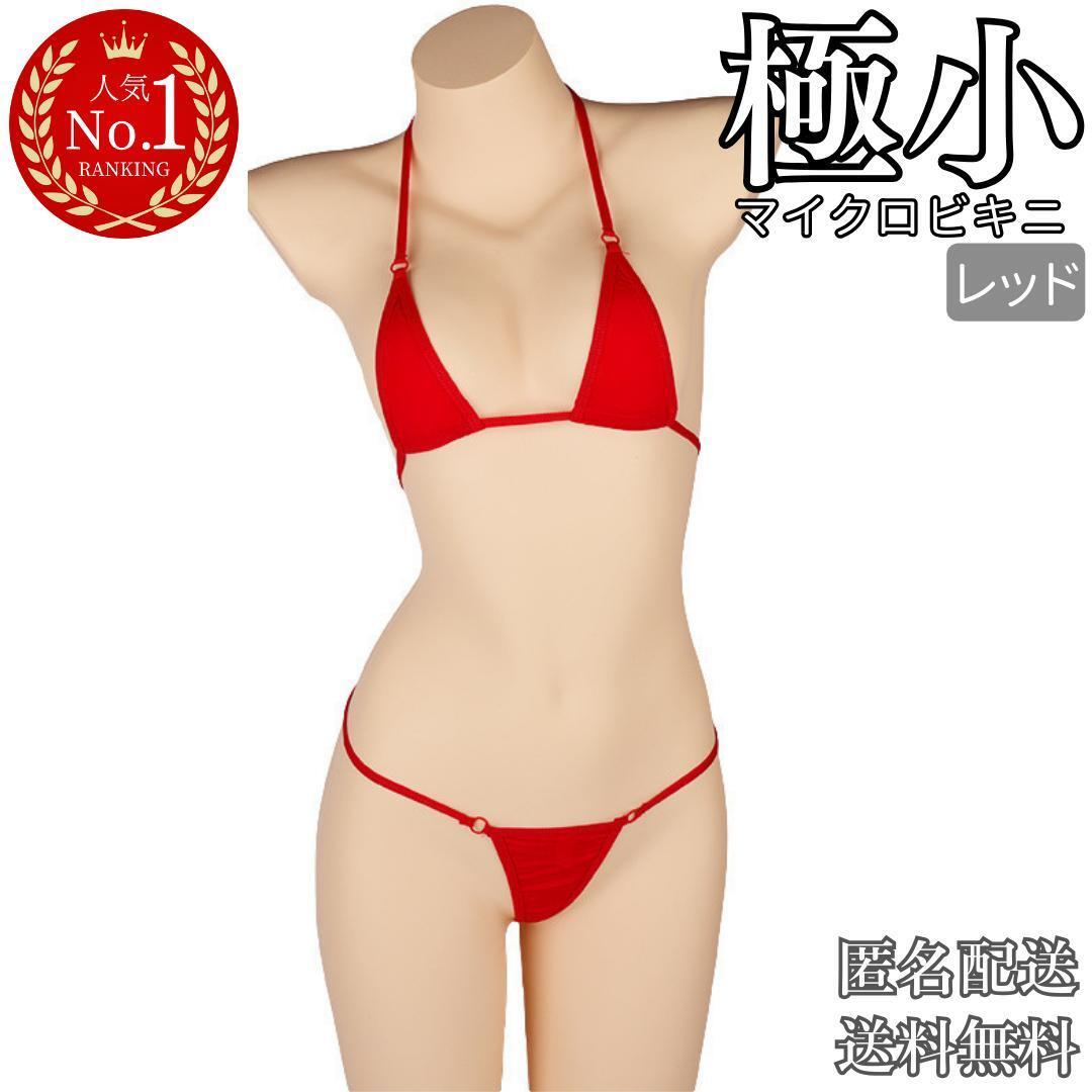 - マイクロビキニ 水着 レッド 極小 極細 かわいい Tバック 三角 紐 赤 セクシー ランジェリー 過激 安い