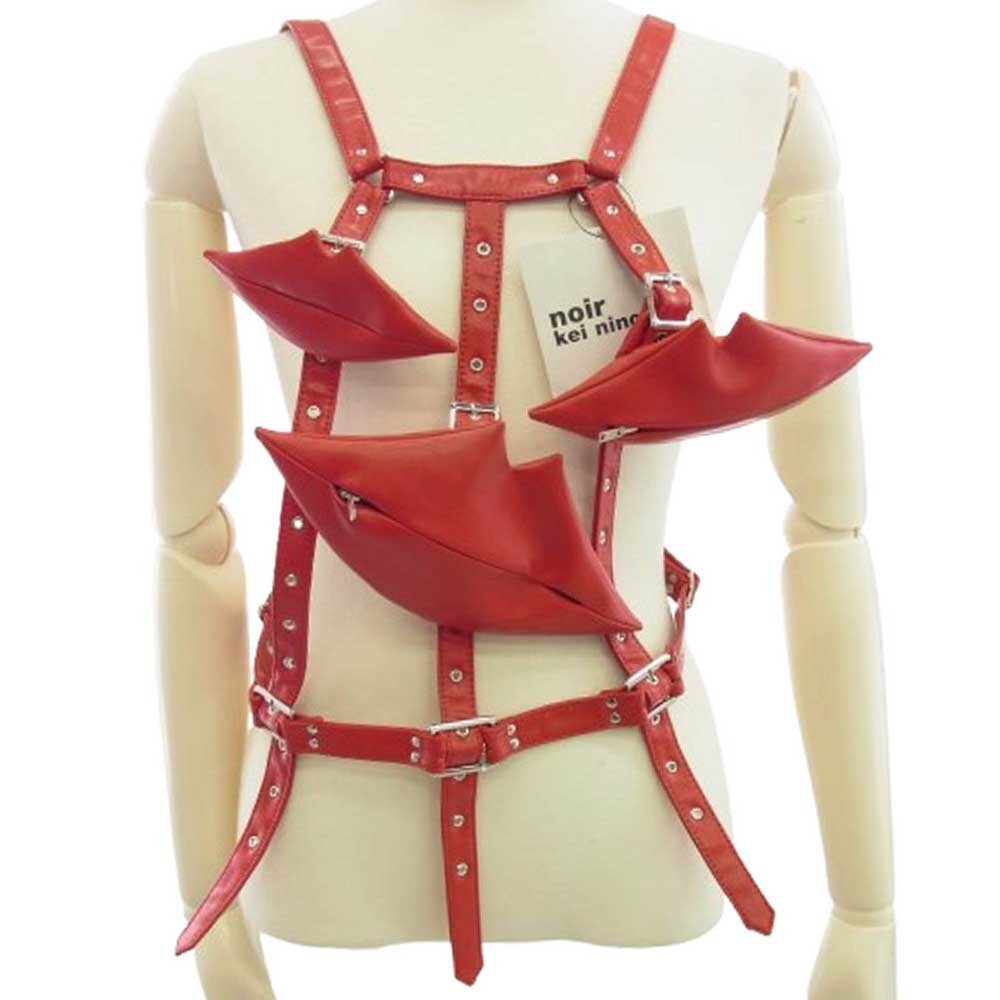 - COMME des GARCONS NOIR コムデギャルソン ノワール 3OV006 フェイクレザー リップ ハーネス ベスト レッド系【新古品】【未使用】【中古】