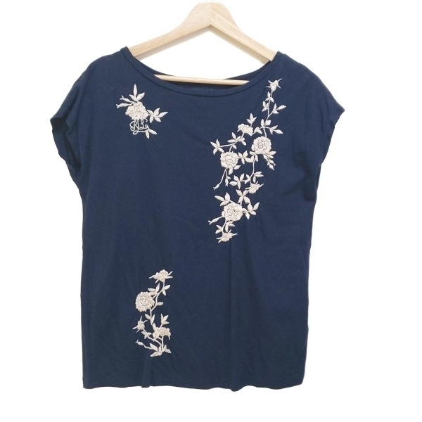 - ラルフローレン RalphLauren 半袖カットソー サイズS - ネイビー×アイボリー レディース クルーネック/刺繍/花柄 美品 トップス