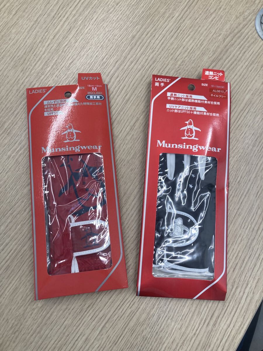 > 【未使用】マンシングウェア レディースゴルフグローブ両手用 18cm〜19cm Mサイズ ネイルフリーx両手用ブラックxレッド2セットまとめて