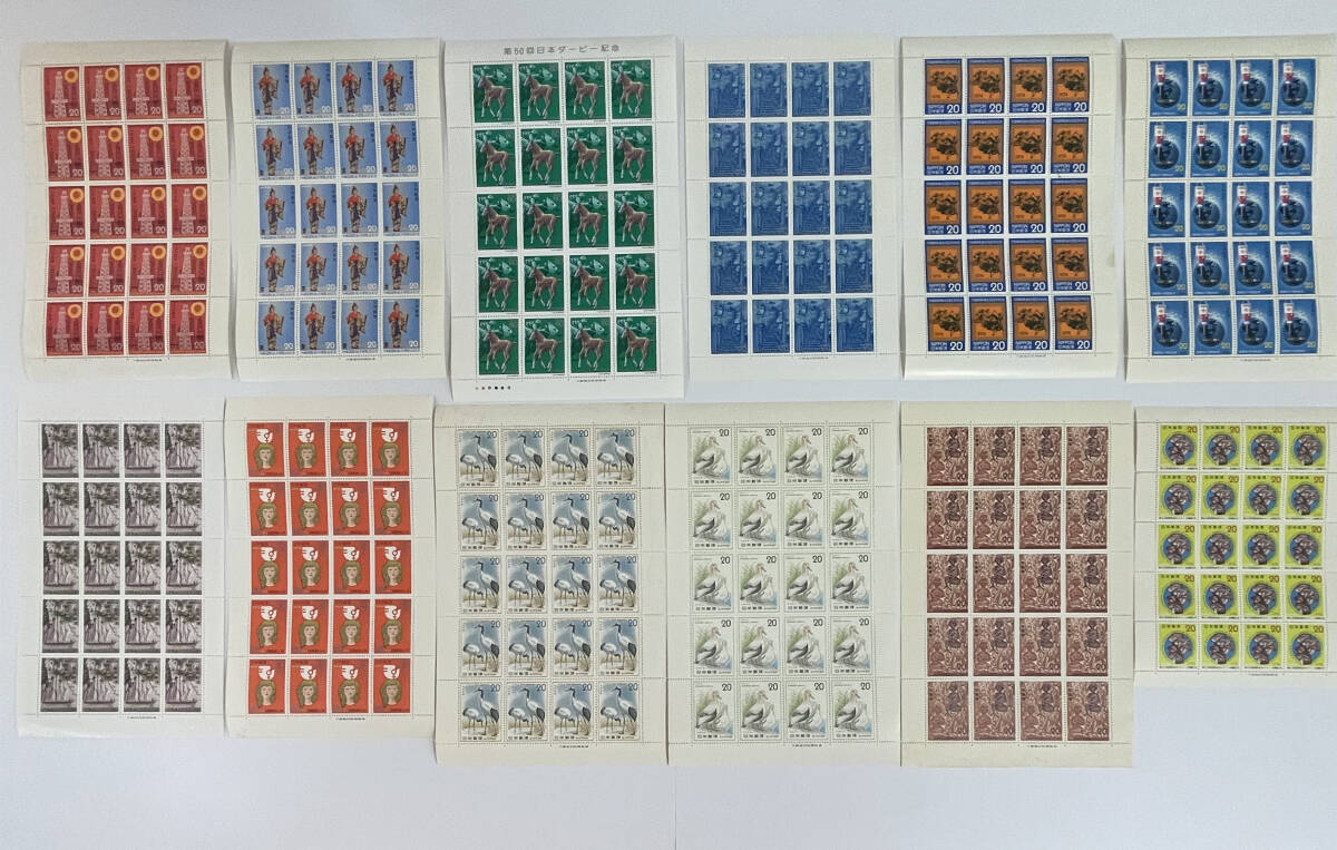 - 20円・60円 記念切手シート12種まとめて!額面5,600円 日本ダービー・自然保護〈トキ/タンチョウ/きのこ〉・赤十字・馬術・文化財ほか