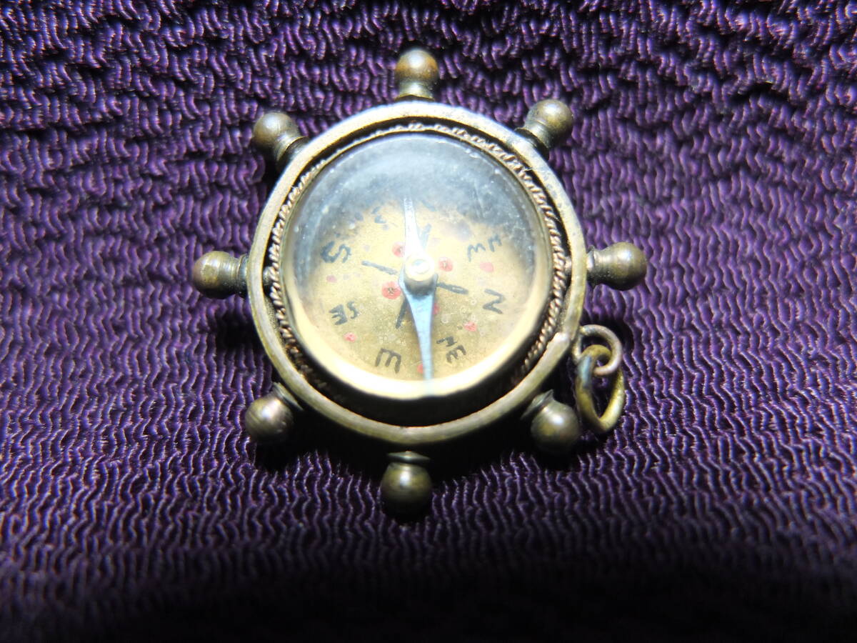 - 【古玩】懐中時計 鎖用方位磁石・舵輪型 傷み無く方位磁石稼働品 明治~大正頃