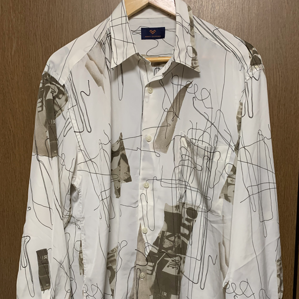> L【mario valentino|長袖シャツ】マリオバレンチノ オフホワイト/ベージュ系 長袖 ポリエステルシャツ レトロ