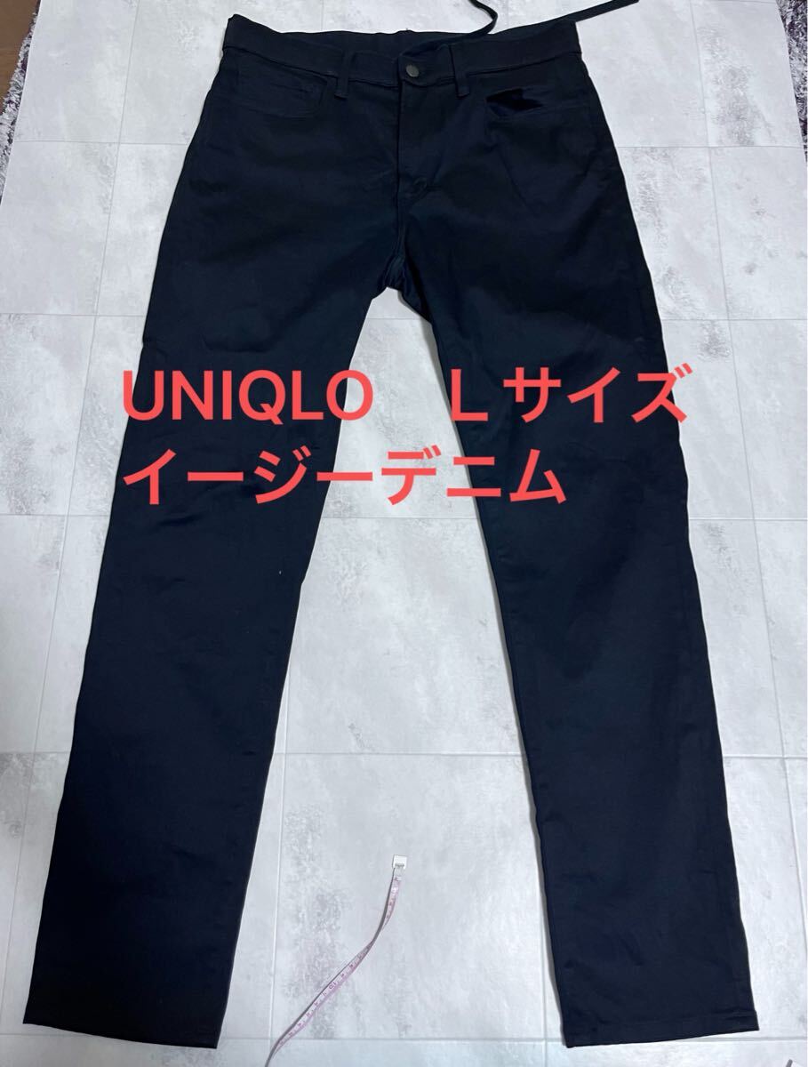> 美品 UNIQLO ユニクロ EZYパンツ イージーパンツ デニム Lサイズ 84-92 321-444589 ブラック 黒