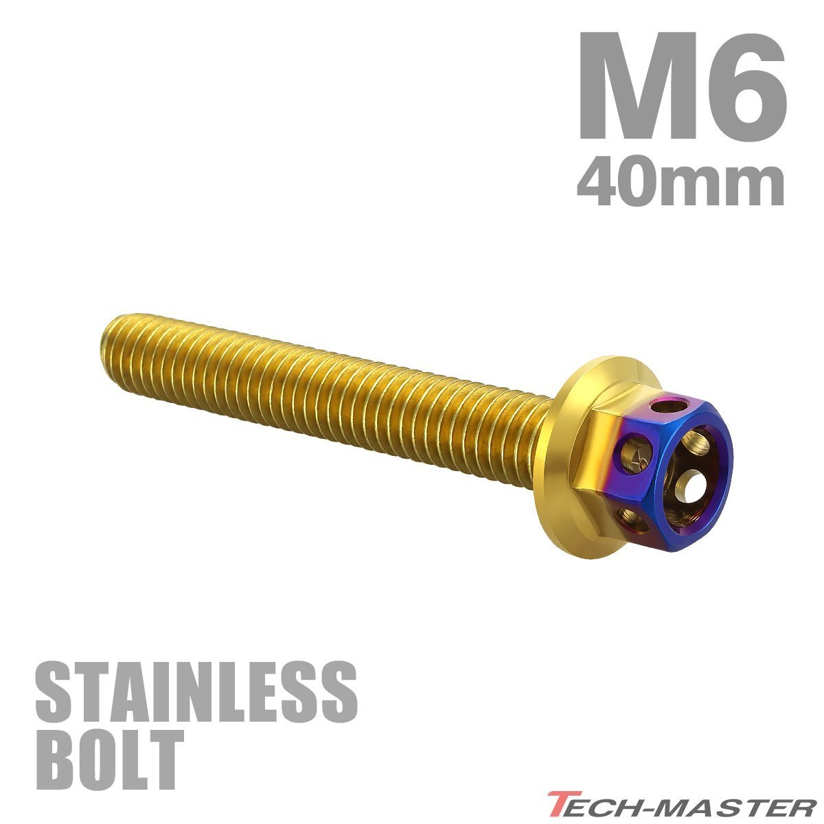 > M6×40mm P1.0 フランジボルト ヘキサゴンヘッド ステンレス ゴールド×焼きチタンカラー エンジン 車 バイク カスタム 1個 TB0790